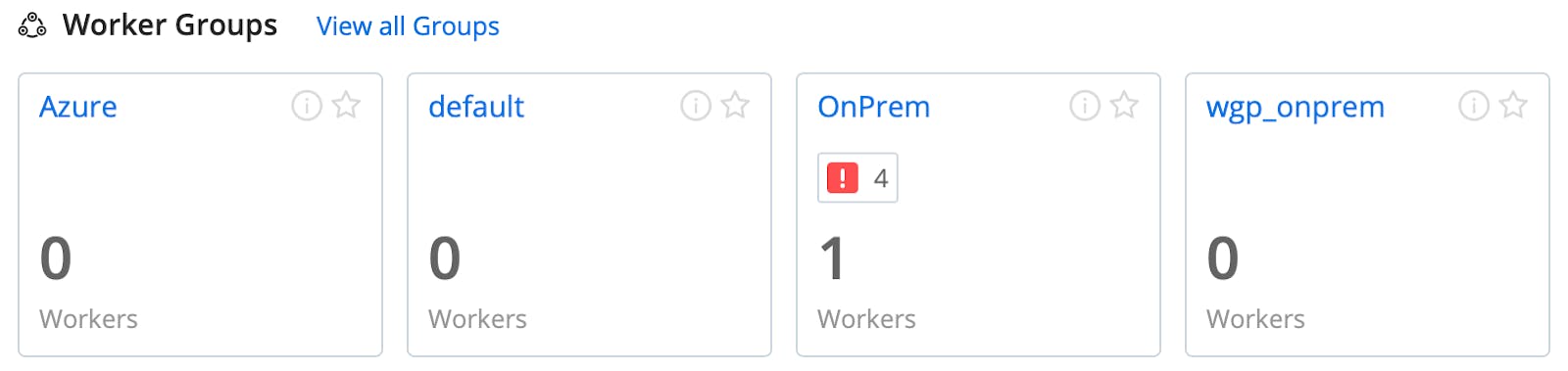 In this example you see the default worker group. We created an exception for this worker group in the naming convention since this group is always there. This gives two workers groups that do not apply to the naming convention: