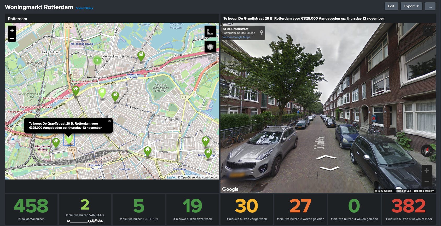 Het is een ongoing project waar nog veel meer uitgehaald kan worden. Ik zie steeds weer andere mogelijkheden en heb verschillende ideeën. Qua dashboard, ben ik bezig met de Splunk Dashboard Beta app om Rotterdam nog beter te kunnen visualiseren en het dashboard naar een hoger niveau te tillen. Verder gezien ik op langer termijn meer data heb wil ik trendlines gaan toevoegen en mogelijk biedt machine learning nog bepaalde voorspellende mogelijkheden. Verder ben ik aan het onderzoeken of ik ook de actuele verkoopprijzen kan verkrijgen zodat je kunt gaan zien hoeveel er gemiddeld overboden wordt. De vraag is echter of deze data vrij te verkrijgen is. Er zullen vast nog andere toffe ideeën zijn. Mocht jij er een hebben, let me know!