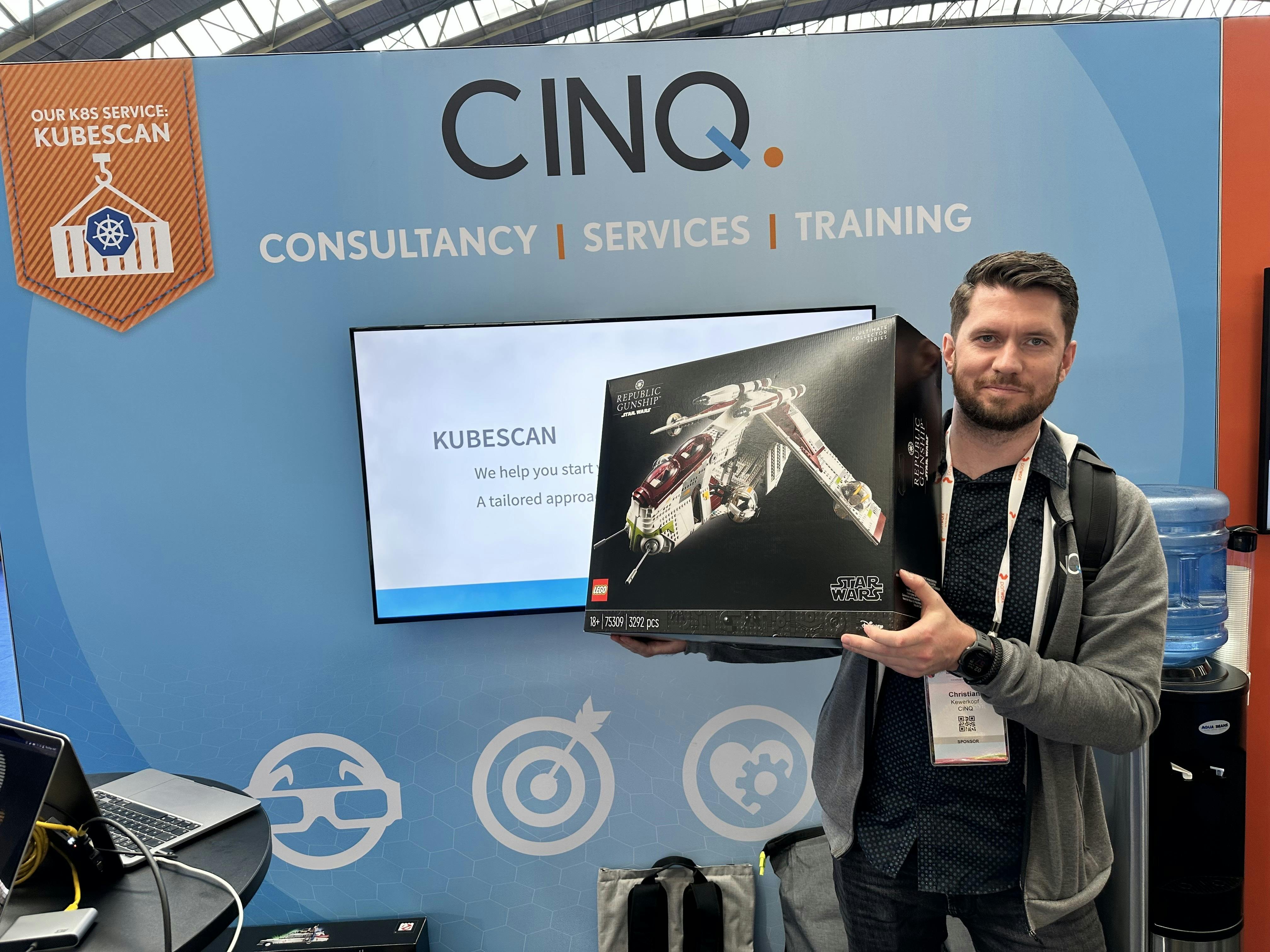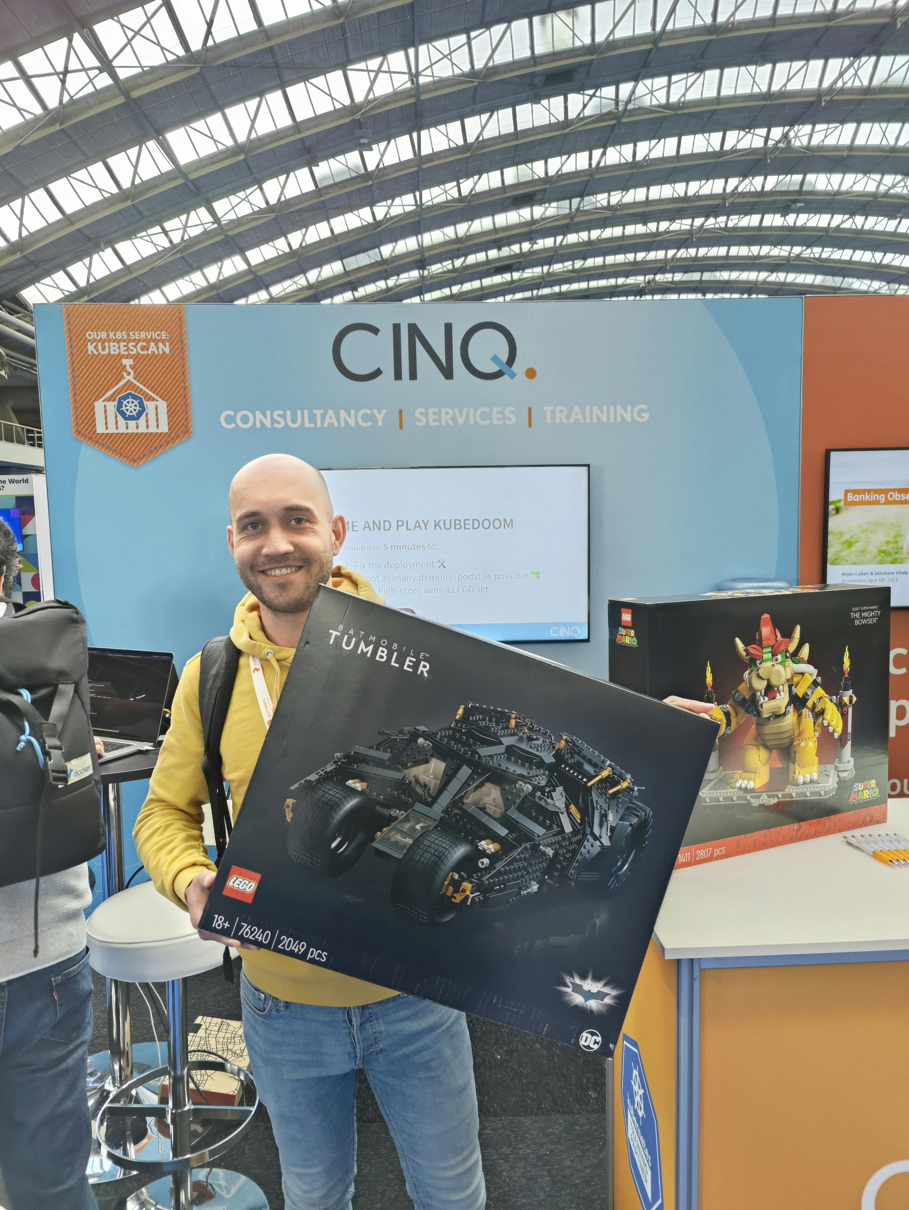 Op onze eigen booth op KubeCon + CloudNativeCon Europe 2023 kun je elke dag een toffe LEGO set winnen door KubeDoom te spelen. Dat LEGO populair is dat wisten we al... Maar dat je het bij bijna 30 booths kunt winnen, hadden wij ook niet gedacht! Er is zelfs een heuse LEGO lounge waar je kan spelen en op woensdag waren de winnaars van LEGO Masters aanwezig tijdens de KubeCrawl / CloudNativeFest voor een workshop. Een ding is duidelijk, deze community is gek op LEGO!