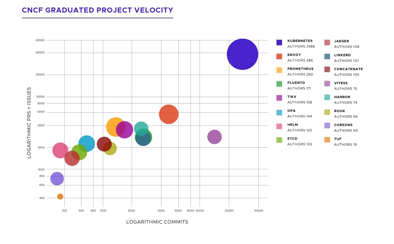 Kubernetes is by far the biggest project, but some others have earned their place as well, like Prometheus, Helm, and Linkerd - as you can see in the image below.