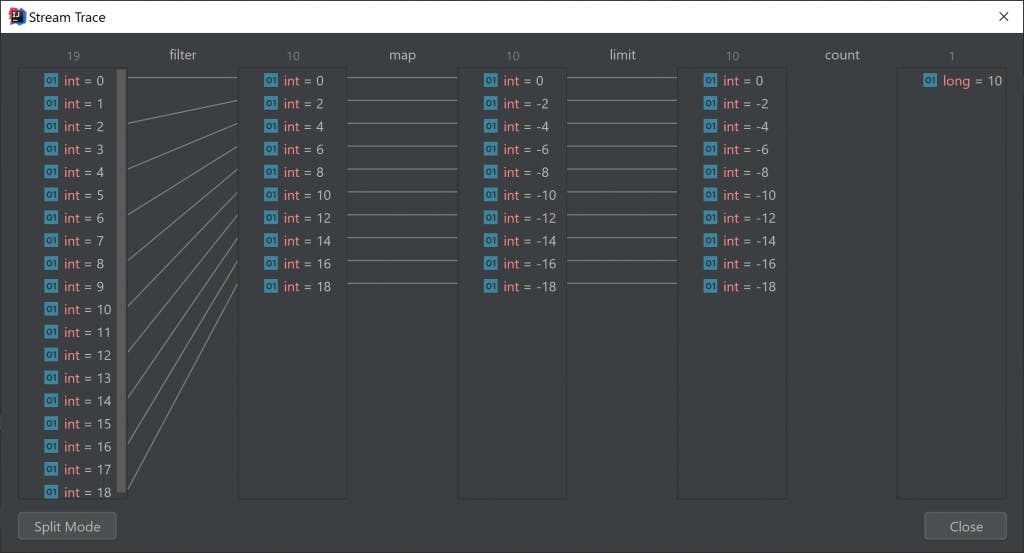 Last but not least: the tip of the day. Since Java 8 we can use streams. This is a wonderful feature, but it is a bit hard to debug. Apparently IntelliJ has a stream debugger. Whenever you are working with streams, you can put a breakpoint on the line containing the stream. When the debugger pauses the execution of the program, you can click on an icon to show the stream debugger.