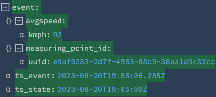 Event 3: you can see the number of vehicles for a specific measuring_point_id