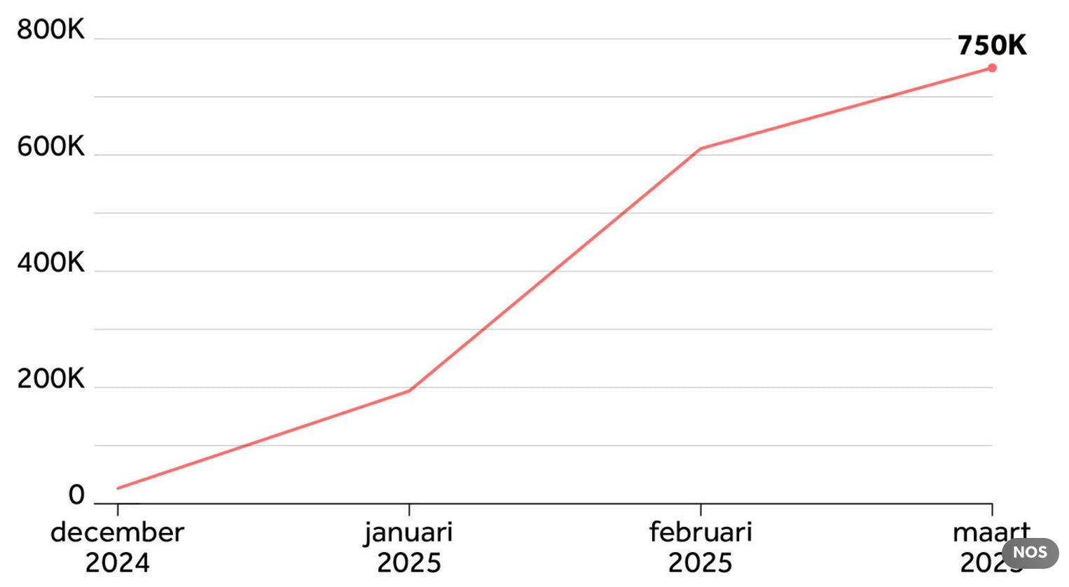 We're not alone in recognizing this challenge. The website european-alternatives.eu, launched in December 2024, has seen a significant surge in traffic (as shown in image below), indicating growing interest in European cloud alternatives. Additionally, cybersecurity expert Bert Hubert a former AIVD supervisor and employee - has repeatedly called on the Dutch government to address this digital dependency.