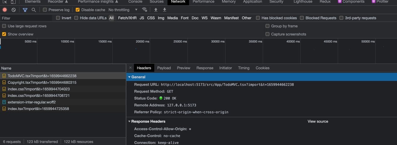 npm run devNa een npm install en npm run dev is mijn lokale omgeving tussen 350-500 ms opgestart. Dat is best snel en dat zonder enige configuratie. Om het wat spannender te maken heb ik het React TypeScript TodoMVC 2022 project uitgecheckt en in mijn Vite project geplaatst. De conclusie was al vrij snel dat ik tot hetzelfde resultaat kwam als bij de initiële setup. Ook de standaard beloofde Hot Module Replacement (HMR) deed wat het moest doen. Ik heb op geen enkel moment een harde refresh van de hele applicatie nodig gehad.
